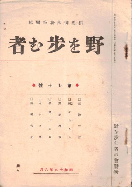※野を歩む者第七十號 糸魚川より・木かげ集ほか 非売品