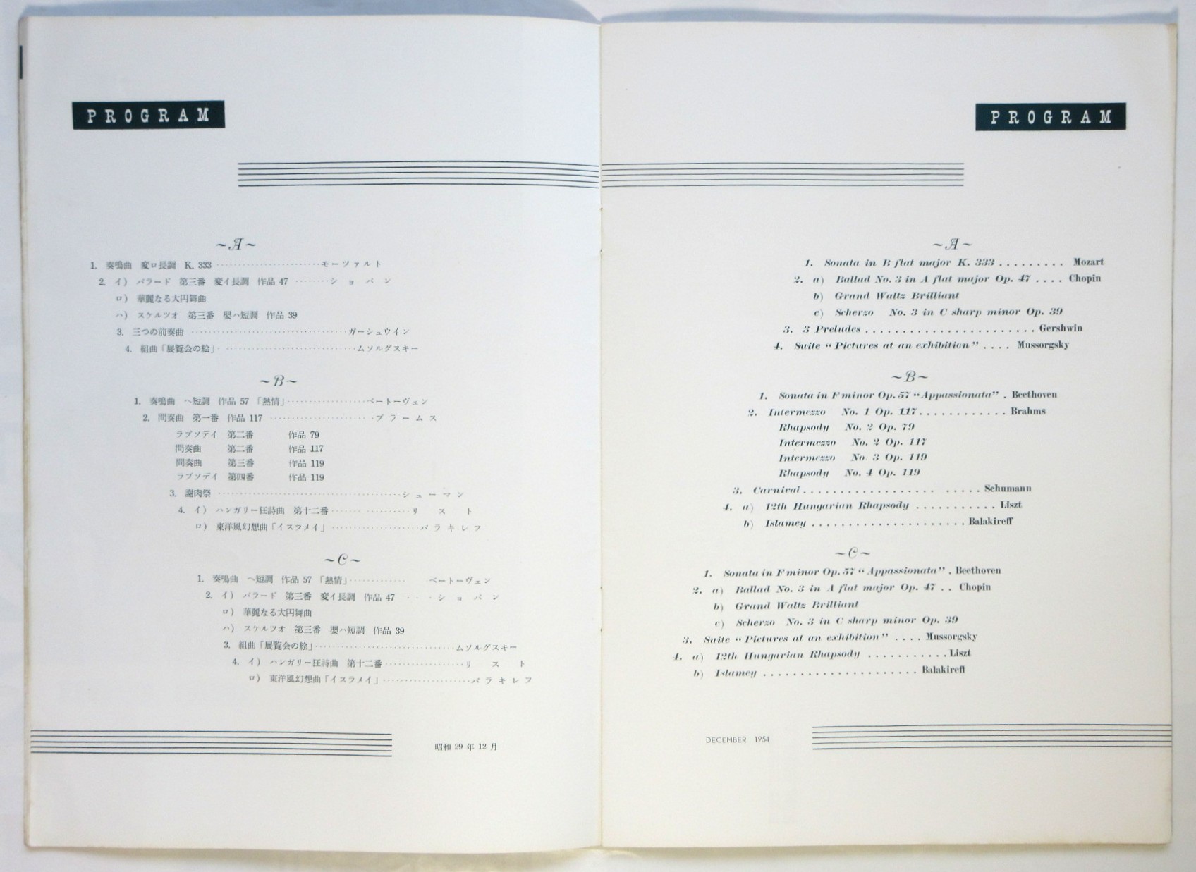 ジュリアス・カッチェン 演奏会プログラム