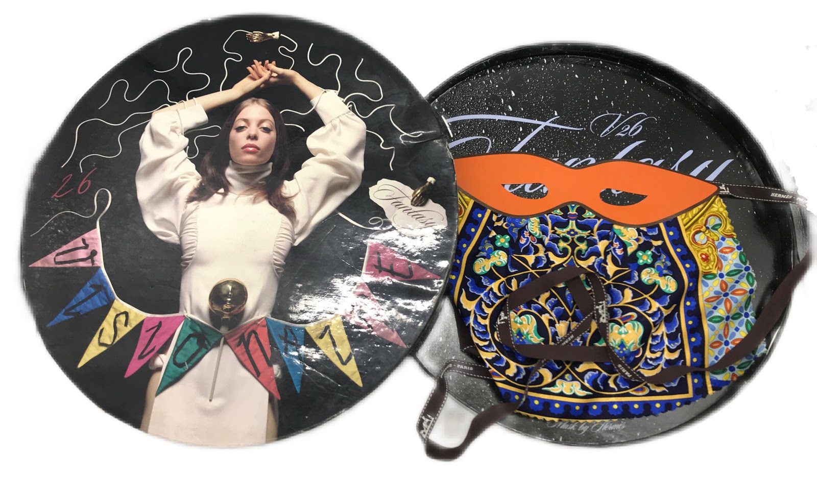 • 解説 限定6000部 エルメス製仮面舞踏会マスク付 ラウンドシート36枚揃 直径 33cm x 高さ 3.8cm円形ボックス入(少いたみ) 中は状態良好