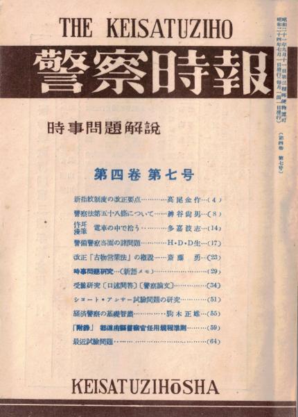 ※警察時報 第四巻第七号 新指紋制度の改正要点=高尾金作・経済警察の基礎知識=駒木正雄ほか
