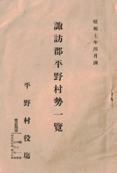 ※諏訪郡平野村勢一覧 昭和7年4月(現在の長野県岡谷市)