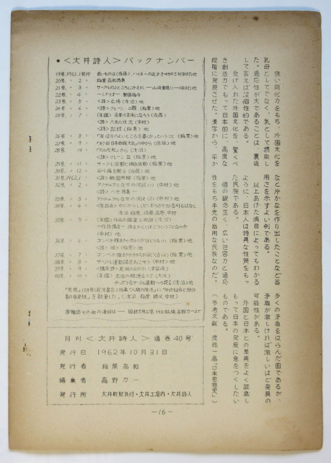 月刊 大井詩人 最終刊40号