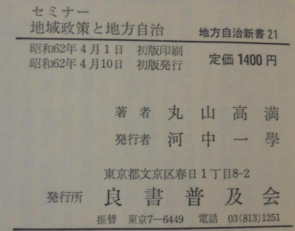セミナー地域政策と地方自治 : 二一世紀へ向けて <地方自治新書 21>