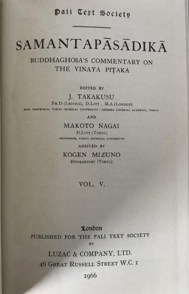 SAMANTAPĀSĀDIKĀ Vol. V: Buddhaghosa's Commentary on Vinaya (1966 PTS Reprint) Volume V