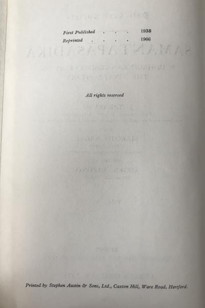 • 解説 This is Volume V of the Pāli Text Society (PTS) edition of the Samantapāsādikā, the main commentary on the Vinaya Piṭaka (Discipline Basket) by the fifth-century scholar Buddhaghosa. It is a key text for understanding monastic rules in Theravada Buddhism. Published by the prestigious Pali Text Society in London, this edition was edited by respected Japanese scholars J. Takakusu and Makoto Nagai, with assistance from Kogen Mizuno. Their involvement highlights the book’s international scholarly importance in Buddhist studies and Indology. This copy is the 1966 reprint of the original 1938 edition, showing the text’s lasting value. PTS hardback editions are out of print and highly sought after by collectors and libraries. The book is in excellent condition, with a clean gray/khaki cloth binding and bright gilt lettering. Minimal shelf wear appears only on the spine ends. This volume is essential for scholars of Theravada Buddhism, monastic law, and ancient Indian history.