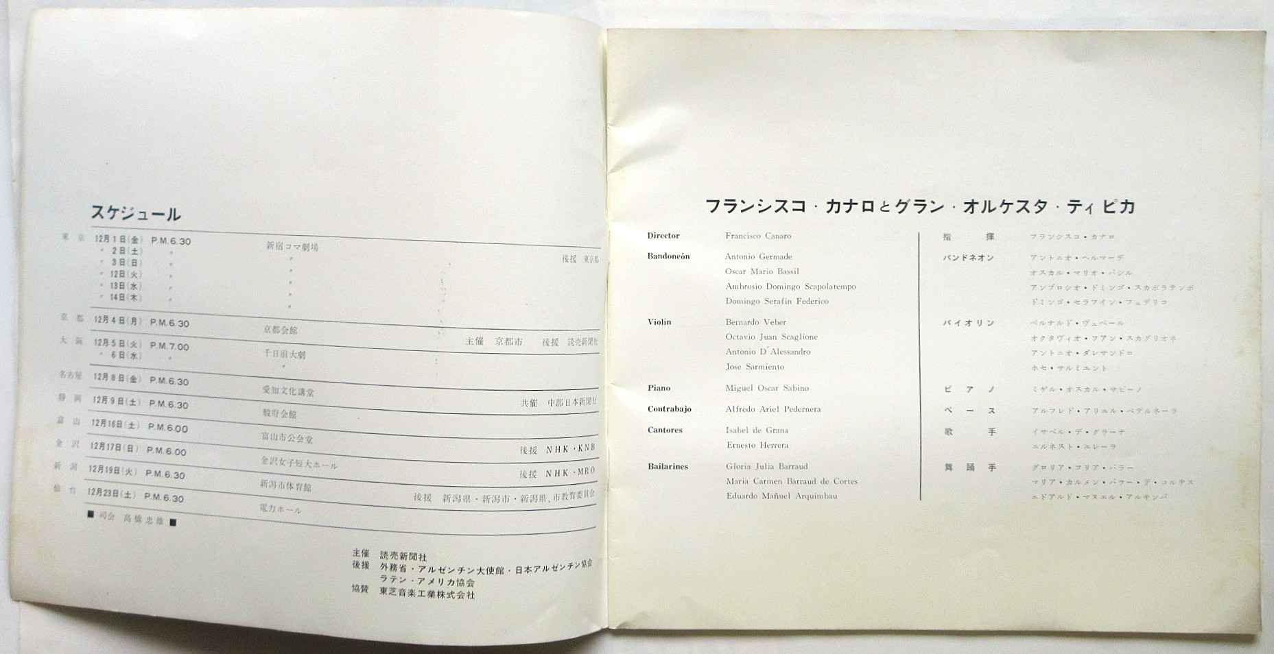 フランシスコ・カナロとグラン・オルケスタ・ティピカ プログラム