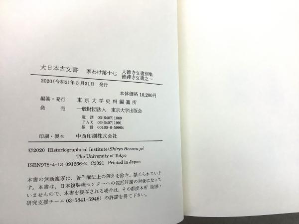大日本古文書 家わけ17 大徳寺文書別集 徳禅寺文書 1・2 2冊セット