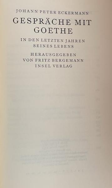 Gespräche mit Goethe in den letzten Jahren seines Lebens