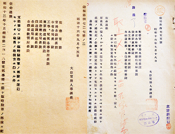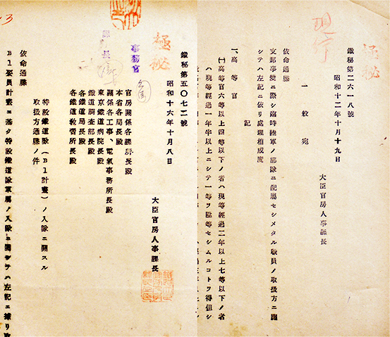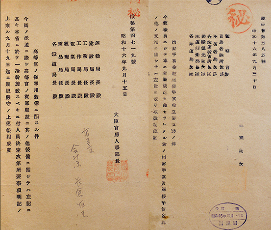 「鐵秘第4755号」他㊙極秘軍事機密資料8部 各B5判2〜8p 大臣官房人事課長 昭和16年