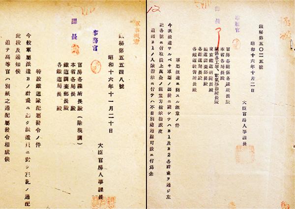 • 解説 軍属派遣ニ関スル注意ノ件/出発手当金並服装手当金立替支払ノ件/特設鐵道隊配属発令ノ件/