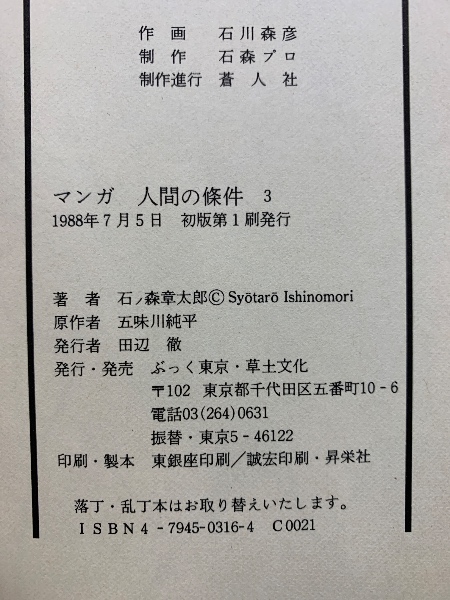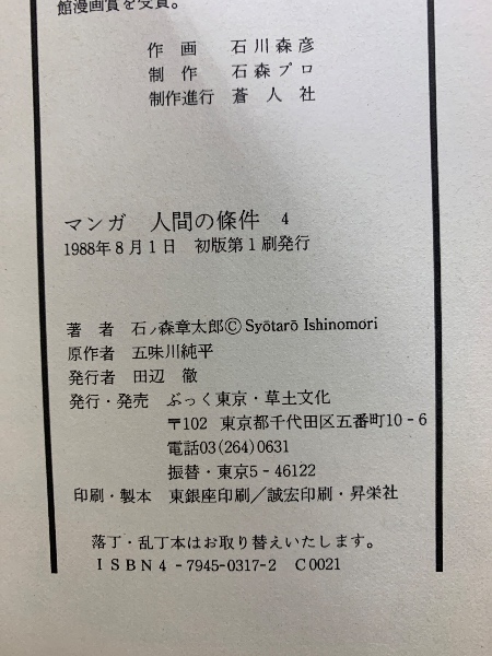 マンガ人間の條件 全4巻揃