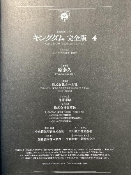キングダム 完全版 4 (愛蔵版コミックス) 集英社 原 泰久