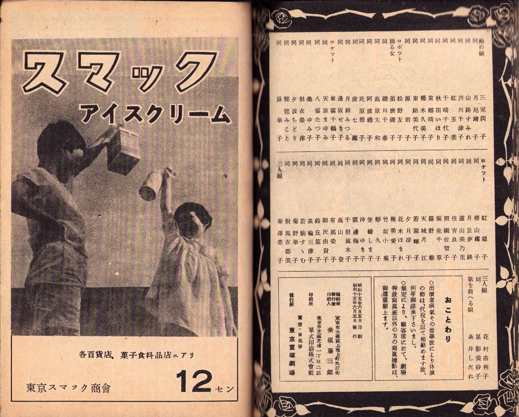 (演劇パンフレット)東京宝塚劇場番組 -昭和15年6月宝塚少女歌劇雪組公演-(東京市)