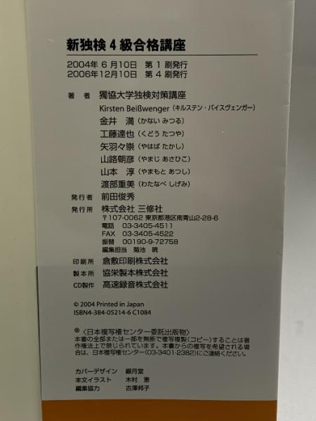 新独検4級合格講座―入門ドイツ語ステップ・イン 三修社 Kirsten BeiBwenger