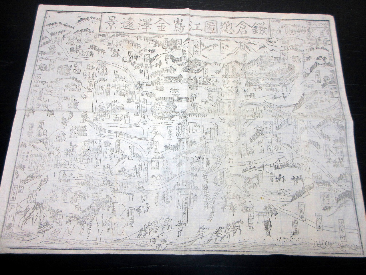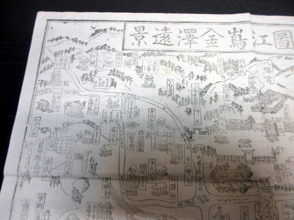 • 解説 明治期古地図鳥瞰図「鎌倉総図江島金沢遠景」1点/戸川蔵板/古書古文書/木版摺りです。