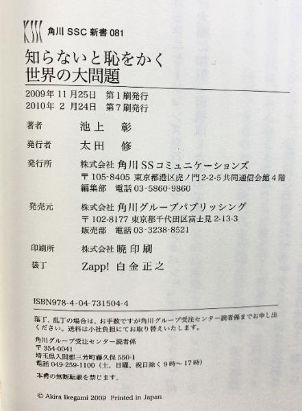 知らないと恥をかく世界の大問題(※不揃い1~9/全8冊セット)角川新書 角川SSC新書 池上彰 2010年~