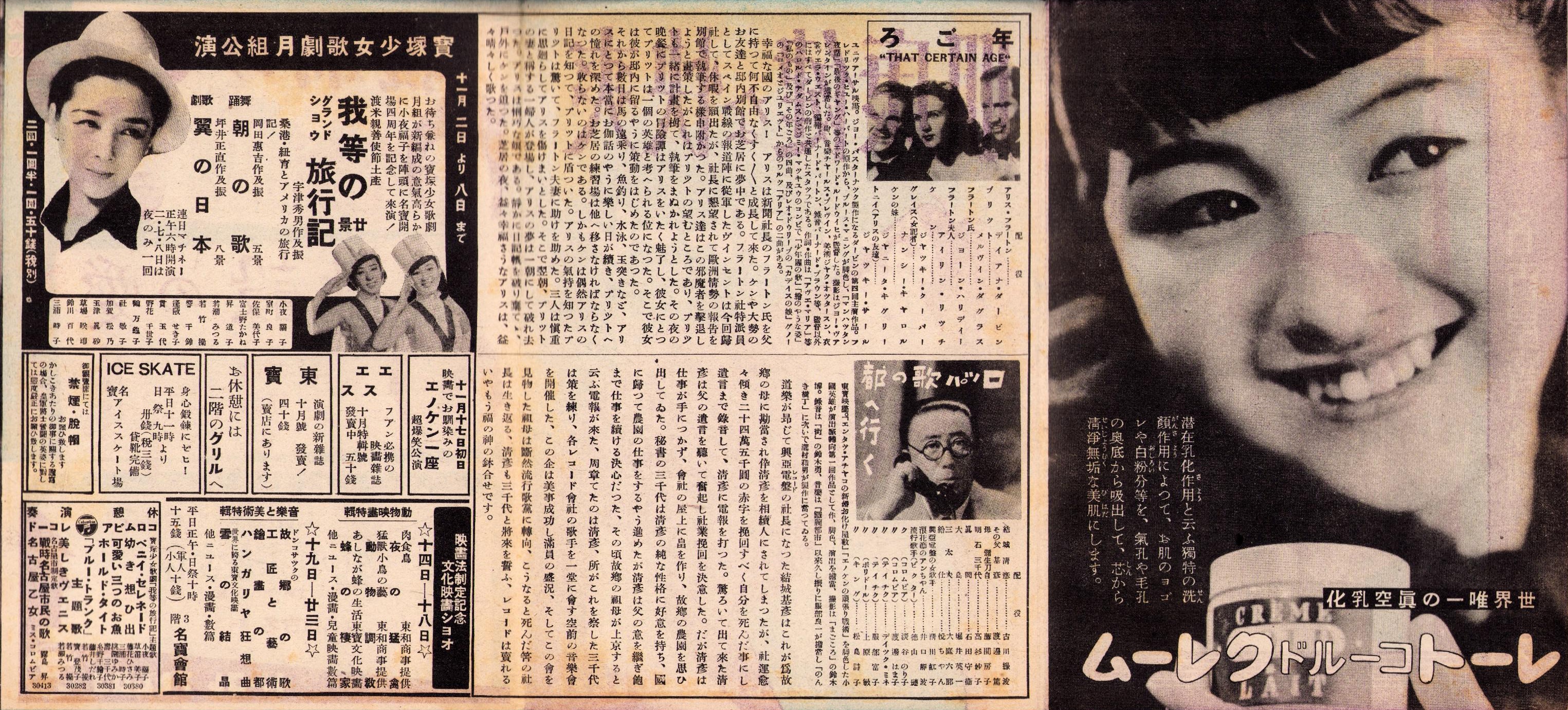 • 著者 〈上映中 年ごろ、ロッパ歌の都へ行く、〉〈予告 その前夜、愛の設計、グランドショウ 我等の旅行記〉
