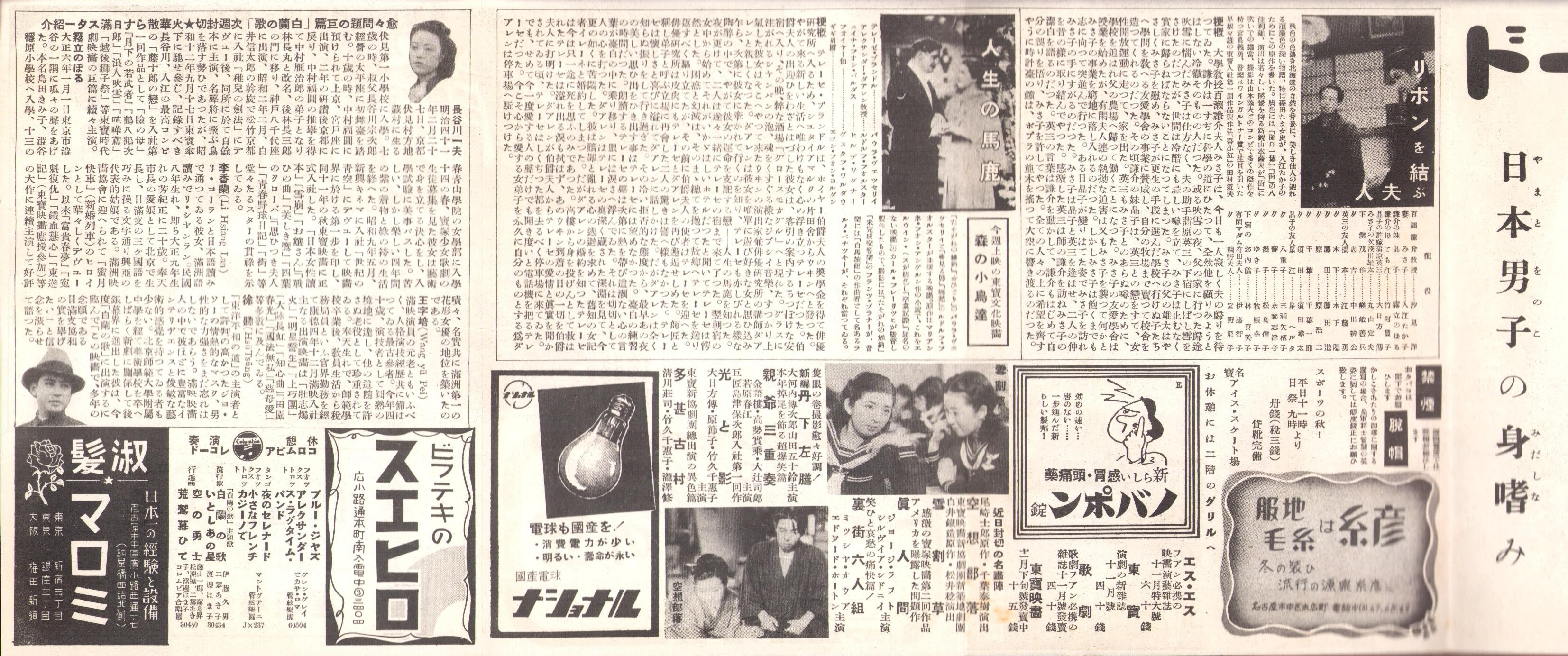 (映画チラシ)名古屋宝塚劇場ニュース 211号 -昭和14年11月- 表紙モデル・李香蘭(名古屋市)