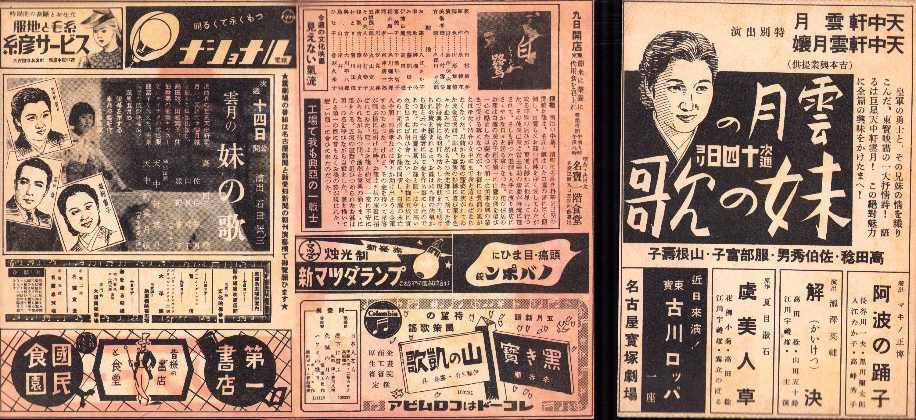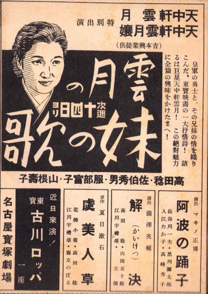 (映画チラシ)名古屋宝塚劇場ニュース 287号 -昭和16年5月- 表紙モデル・天中軒雲月(名古屋市)