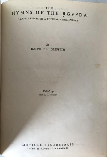 Vintage Motilal Banarsidass: The Hymns of the Ṛgveda Translated by R. T. H. Griffith, 1973 Hardcover