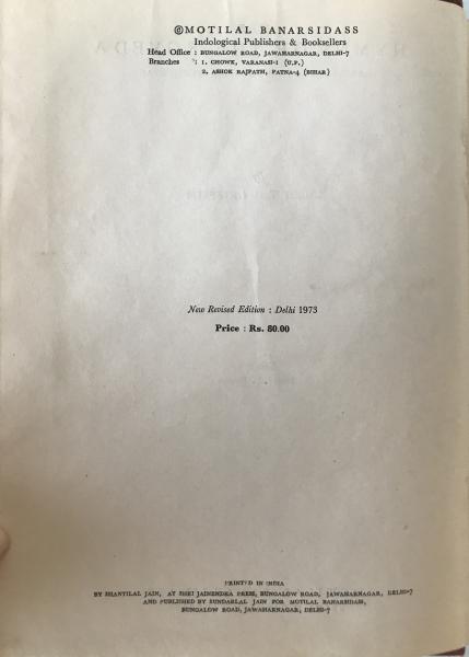 • 解説 Bound in sturdy maroon/red cloth with bright gilt spine stamping, this MLBD hardcover is graded B (Good Used Condition). The binding is tight, gilt lettering intact, and only minor rubbing and corner wear are present. The main condition note is the heavy, uniform age-toning of the paper edges, typical of 1970s Indian academic printing. The title page shows light spotting, but no tears, major flaws, or internal markings are visible; the text block remains clean and fully usable. As a durable vintage MLBD edition, it offers strong archival value for collectors of Vedic and South Asian scholarly works.