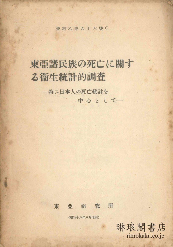 東亜諸民族の死亡に関する衛生統計的調査 資料乙第66号C