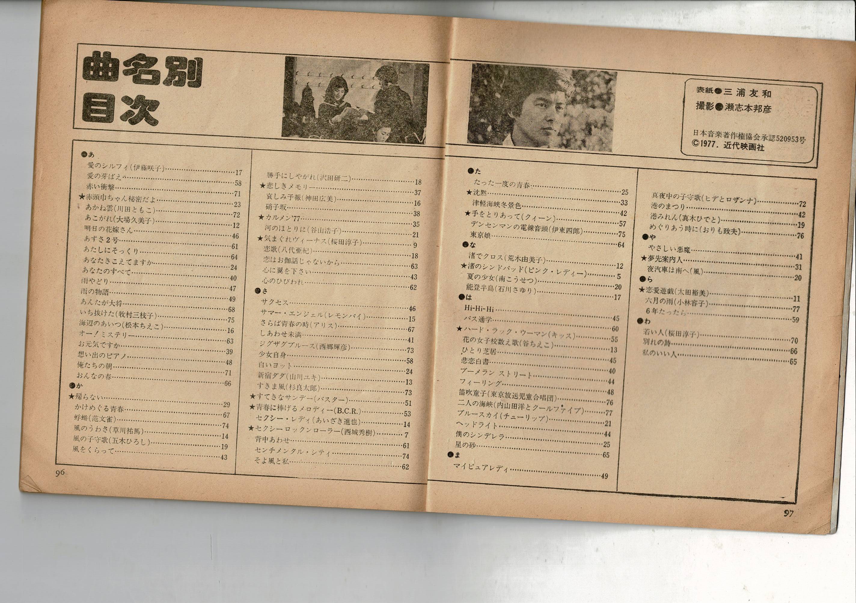 NOW HITS SONG 昭和52年近代映画7月号付録歌本