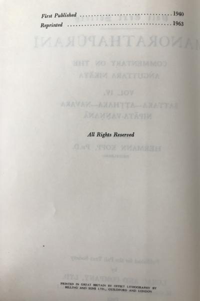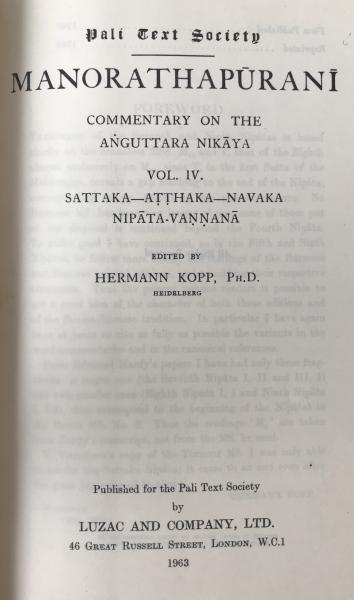 Manorathapurani Vol IV (1963 PTS Reprint) Buddhaghosa Commentary Anguttara Nikaya vol iv