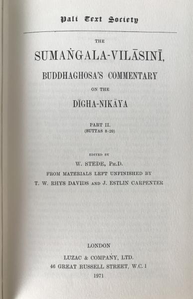 Sumaṅgala-Vilāsinī Vol II (1971 PTS) Buddhaghosa Dīgha-Nikāya Commentary Vol II