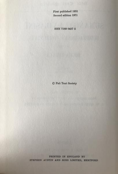 • 出版社 Pali Text Society (PTS) / Luzac & Company, LTD