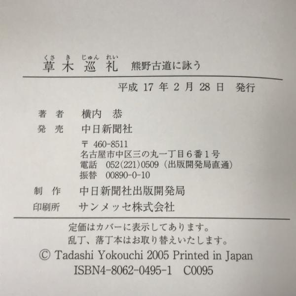 草木巡礼―熊野古道に詠う 横内恭 中日新聞社