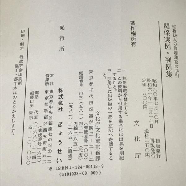 宗教法人の管理運営の手引 関係実例・判例集 ぎょうせい 文化庁