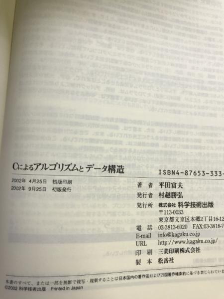 Cによるアルゴリズムとデータ構造 (コンピュータサイエンス・シリーズ) 科学技術出版(文京区) 平田富夫(著)