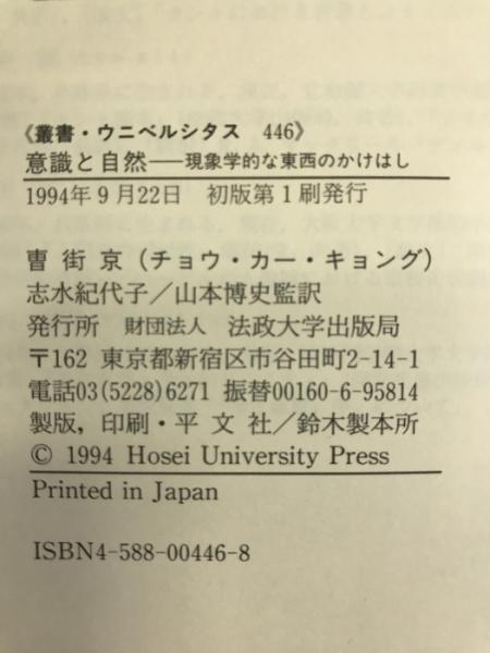 意識と自然―現象学的な東西のかけはし (叢書ウニベルシタス) 法政大学出版局 曺街京(チョウ・カー・キョング)