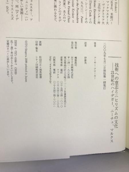 技術への意志とニヒリズムの文化―21世紀のハイデガー、ニーチェ、マルクス NTT出版 アーサー・クローカー 伊藤茂(訳)