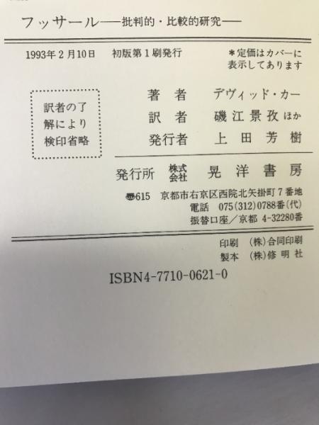フッサール―批判的・比較的研究 (哲学叢書) 晃洋書房 デヴィッド・カー