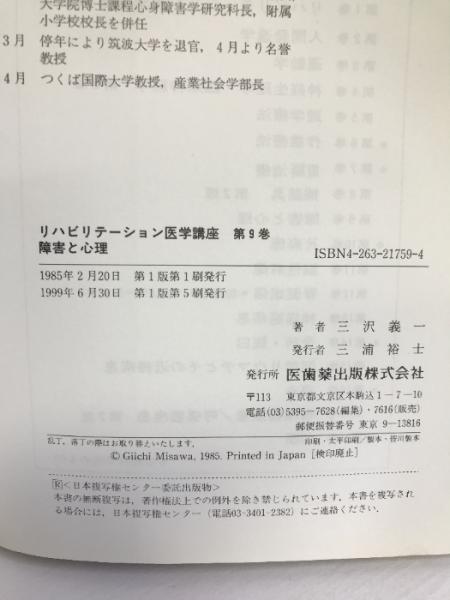 リハビリテーション医学講座 第9巻 障害と心理 医歯薬出版