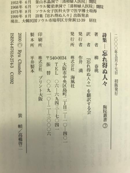 忘れ得ぬ人々―詩集 (陶院叢書 7) 海風社 柳春桃