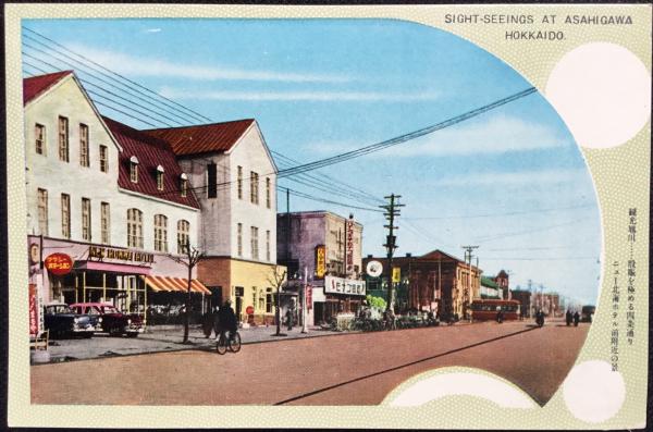 〈絵葉書〉旭川市四条通り ニュー北海ホテル前附近の景