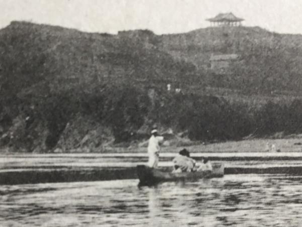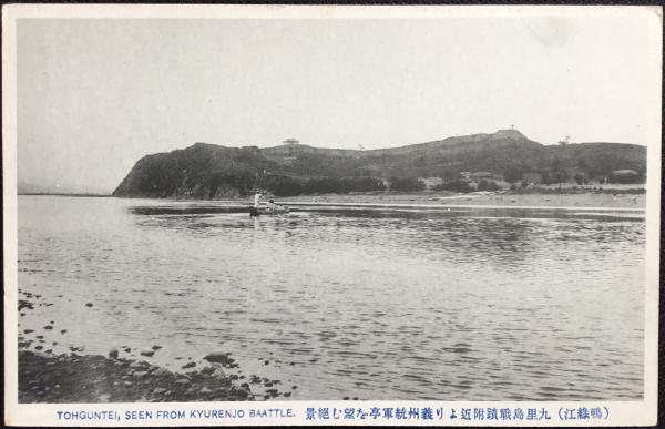 〈絵葉書〉鴨緑江 九里島戦跡附近より義州統軍亭を望む絶景