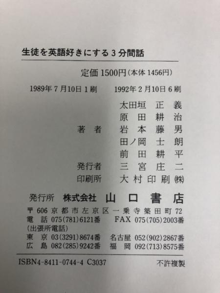 生徒を英語好きにする3分間話 山口書店 太田垣 正義 原田耕治 他