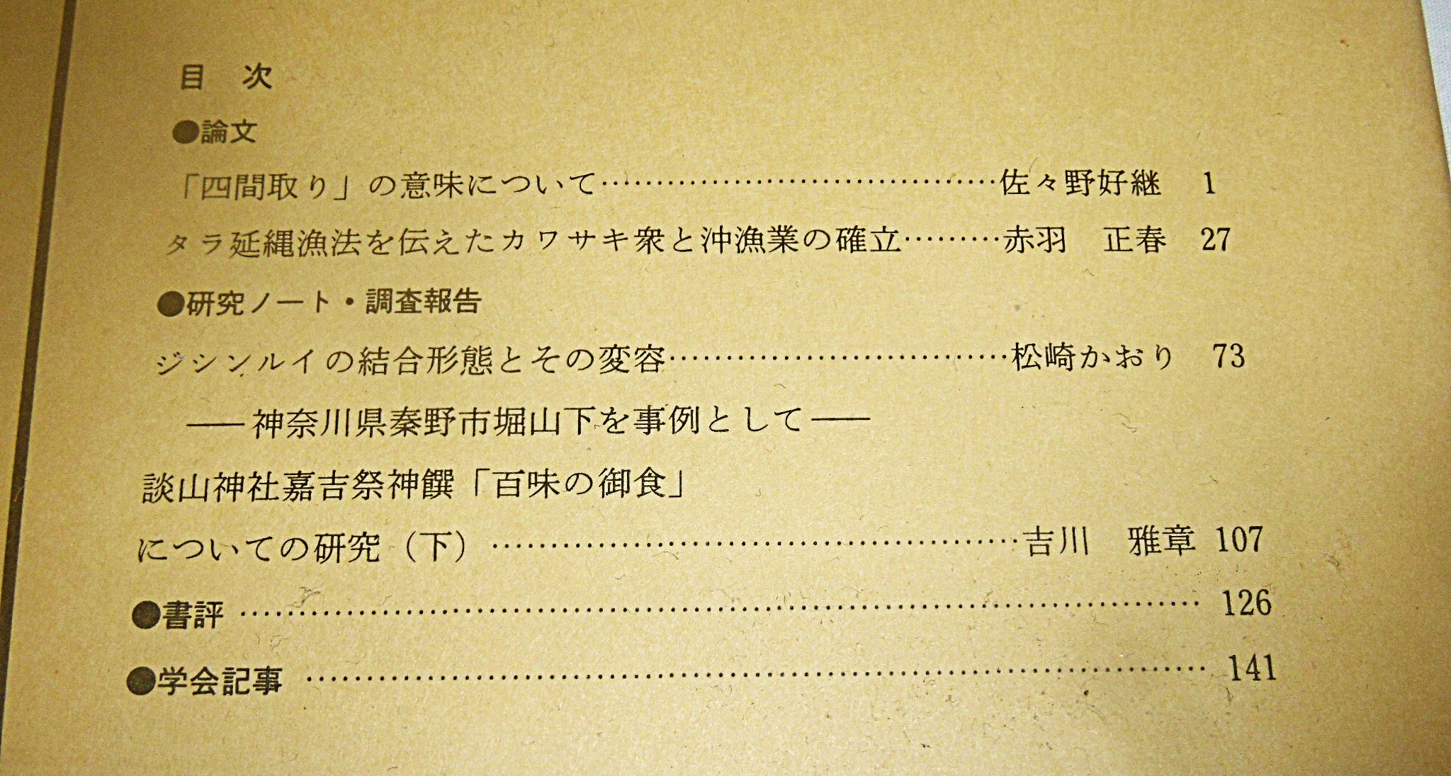 日本民俗学 第182号 (タラ延縄漁法を伝えたカワサキ衆と沖漁業の確立…他)