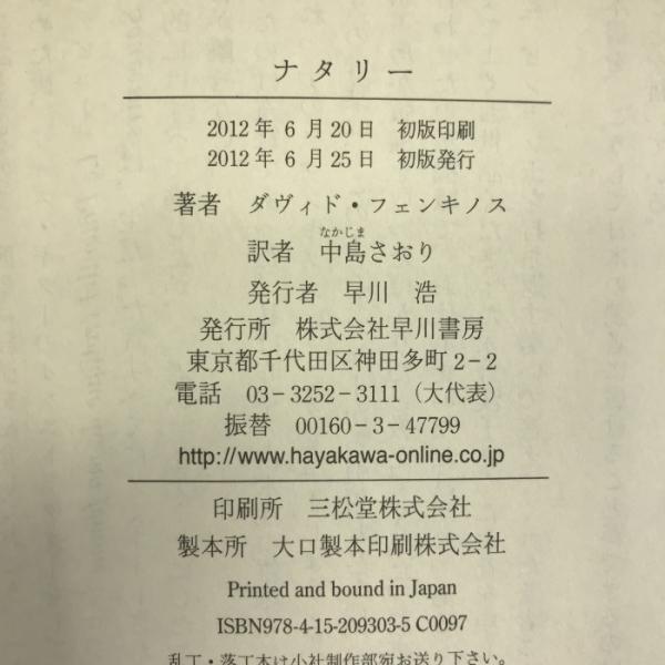 ナタリー Hayakawa Publishing/Tsai Fong Books ダヴィド フェンキノス