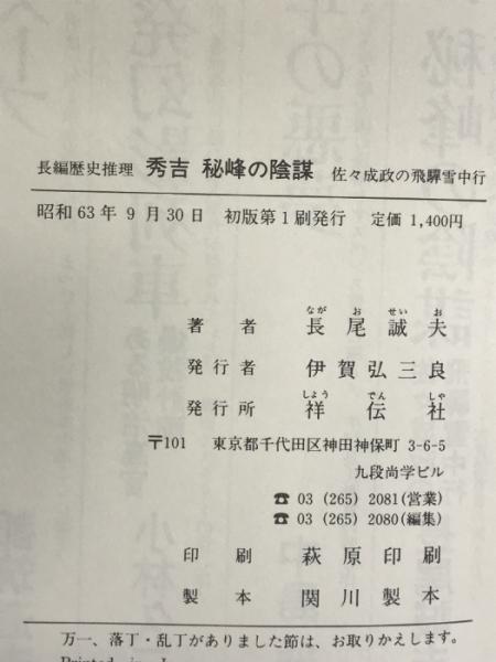 秀吉 秘峰の陰謀―佐々成政の飛騨雪中行 祥伝社 長尾 誠夫