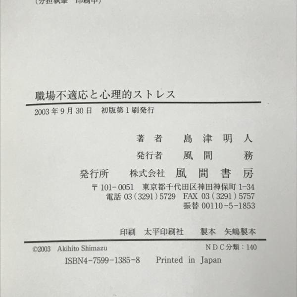 職場不適応と心理的ストレス 風間書房 島津 明人