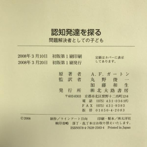 認知発達を探る―問題解決者としての子ども 北大路書房 アリソン・F. ガートン