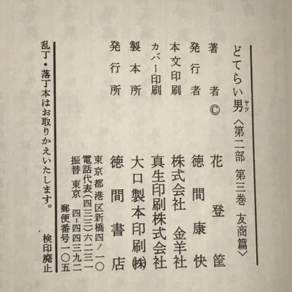 どてらい男 友商篇 (どてらい男第二部) 徳間書店 花登筺
