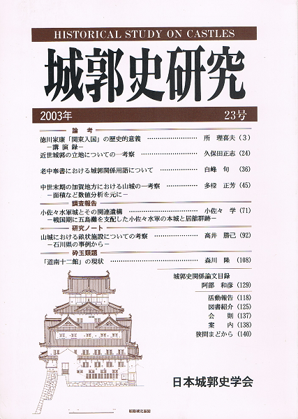 城郭史研究 23号 徳川家康「関東入国」の歴史的意義 近世城郭の立地についての一考察 小佐々水軍城とその関連遺構 ほか