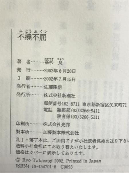 不撓不屈 新潮社 高杉 良