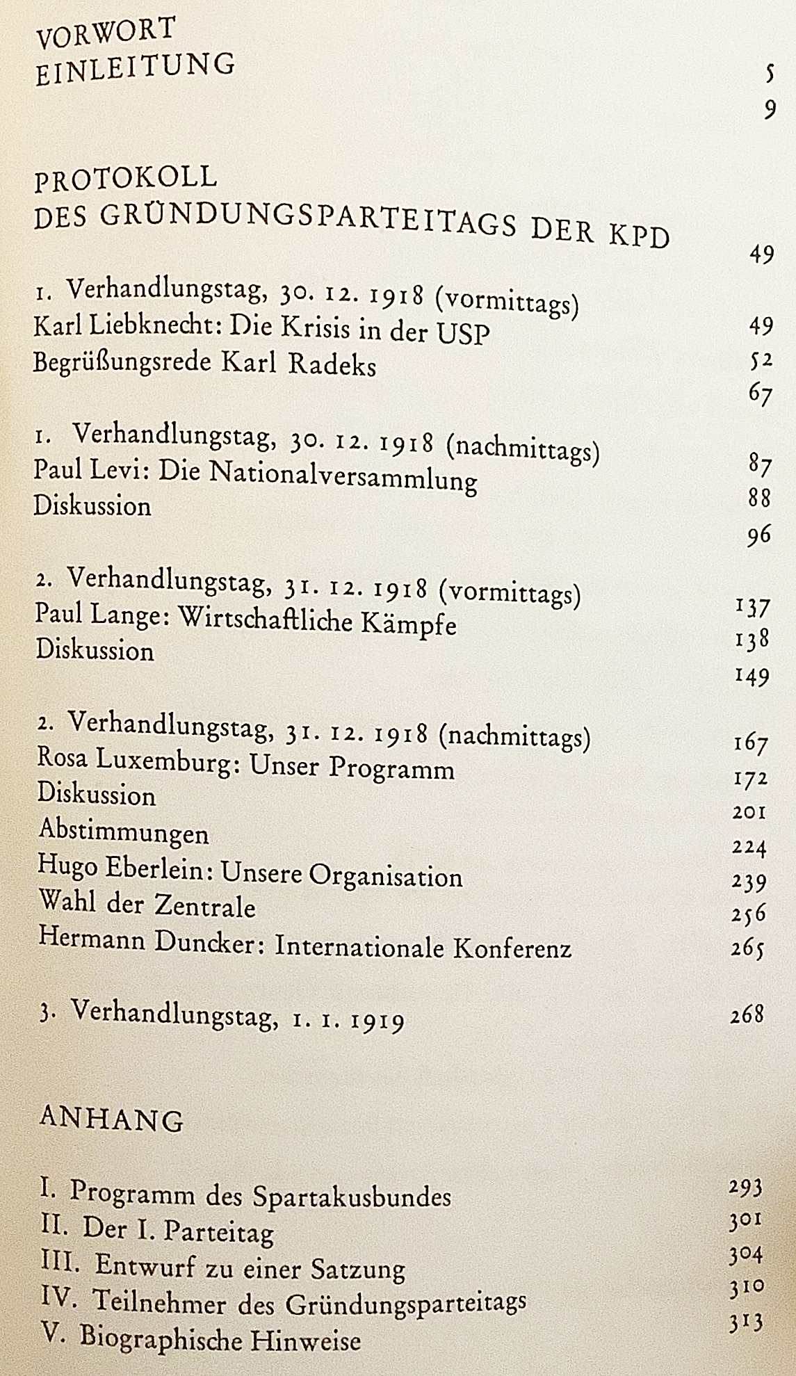 1918年12月30日から1919年1月1日までベルリンのプロイセン議会庁舎で開かれた創立大会の議事録を中心に、ローザ・ルクセンブルク、カール・リープクネヒト、パウル・レヴィ、ヒューゴ・エーベルラインら主要指導者の演説・討議記録が詳細に収録。